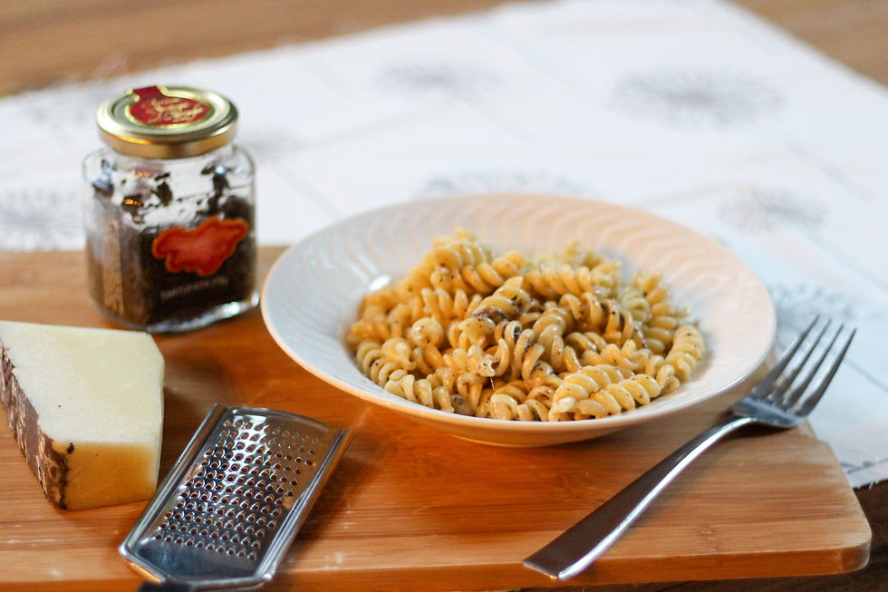 I've been so swamped at work lately, and sometimes, when stress hits, a girl just gotta eat. I take comfort in this bowl of macaroni and cheese (as so many of you do, too, I'm sure!). For an extra helping of comfort induced by reminscing about my recent trip to Alba, I made mine with truffle paste.