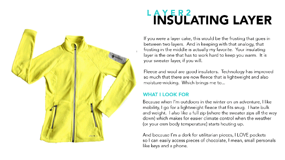 You will hear me say this again and again, but bulky jackets don't mean squat. If you read my post on 10 Myths About Dressing for a Winter Adventure, you will read about how I get preachy that bulky and heavy clothing is actually not what you want to be wearing on a cold, wintry day outdoors.